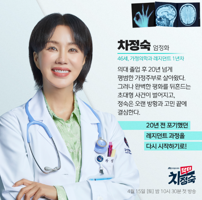 20년 차 가정주부에서 1년 차 레지던트가 된 차정숙의 좌충우돌 에피소드를 다룰 예정이고 엄정화가 주연을 맡게 되어 더욱 기대가 되는 작품입니다.