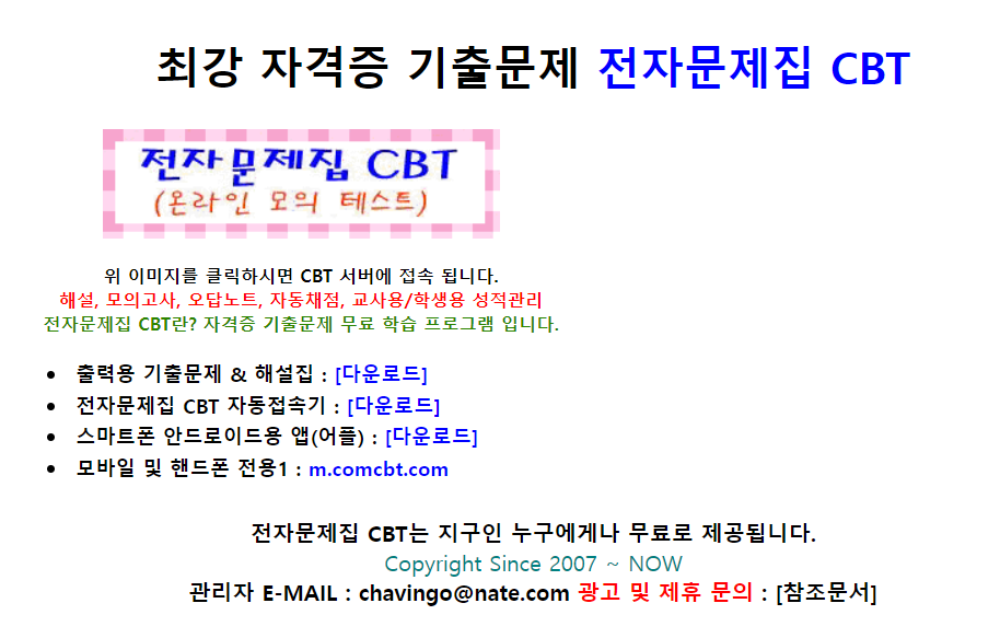 이 사이트는 회원가입 없이 무료로 자격증 기출문제를 확인할 수 있는 사이트로 추천드립니다.