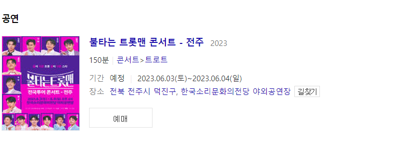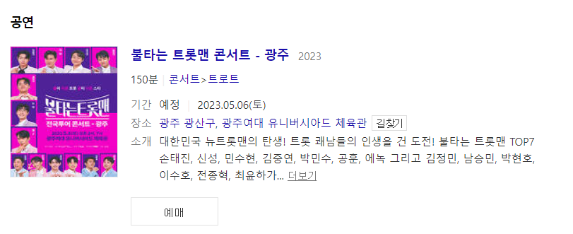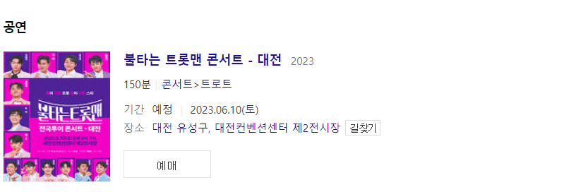 이렇게 전국적으로 진행되는 불타는 트롯맨 전국투어 콘서트를 예매하는 방법을 알아보겠습니다.