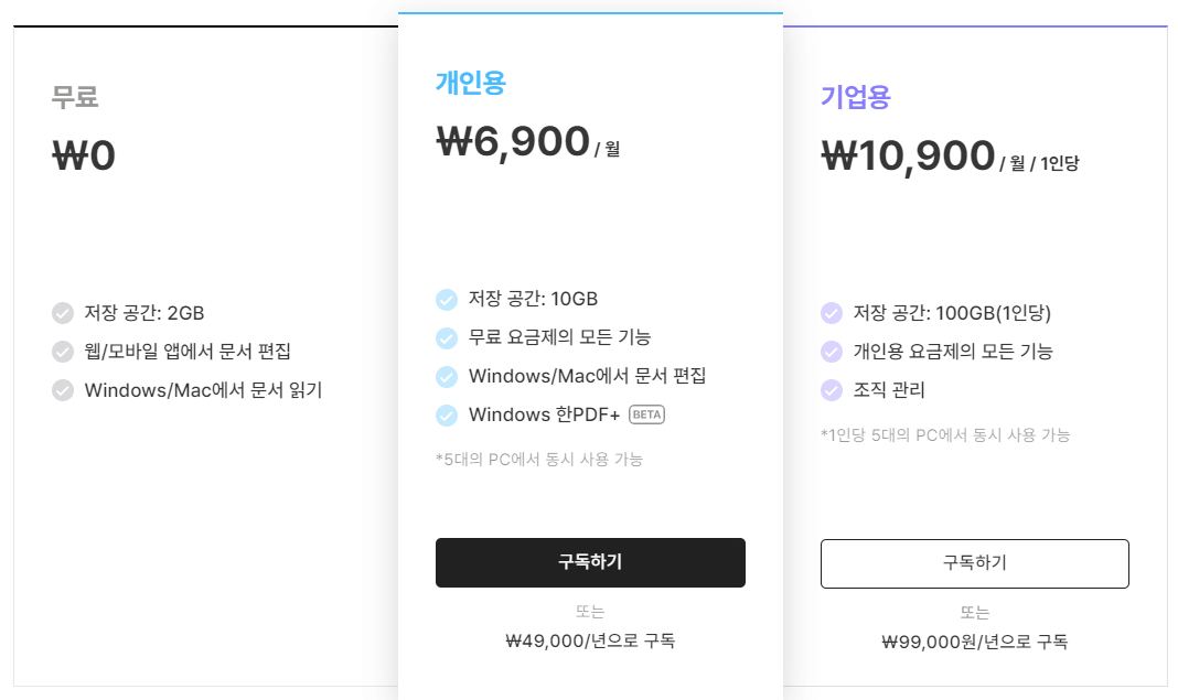 우선 한컴오피스는 현재 구독 서비스로 전환되어 월 구독으로 이용이 가능한 형태로 바뀌었습니다.